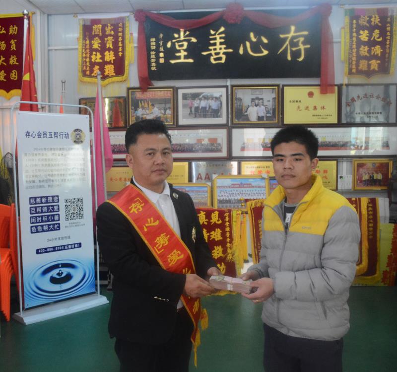 有困难找存心;林思如仔,男婴,潮阳西胪人,7个月生早产儿,体重才2.2斤,直接被送保温箱,后出现肠梗阻,需要手术,家庭经济困难,幸得向存心潮普分会求助,善堂为其发起存心筹, 2018月1月24日,存心筹爱心使者小组在徐英豪组长的带领下,由分会杨右铭会长代表社会热心人士捐赠的人民币贰万陆仟柒佰多元(26787.00元)善款送到其亲属手中。缓解他们的经济压力,存心在行动,如果您身边有需要帮助,可关注存心善堂公众号或汕头橄榄台进入存心善堂求助,我们就在您身旁。